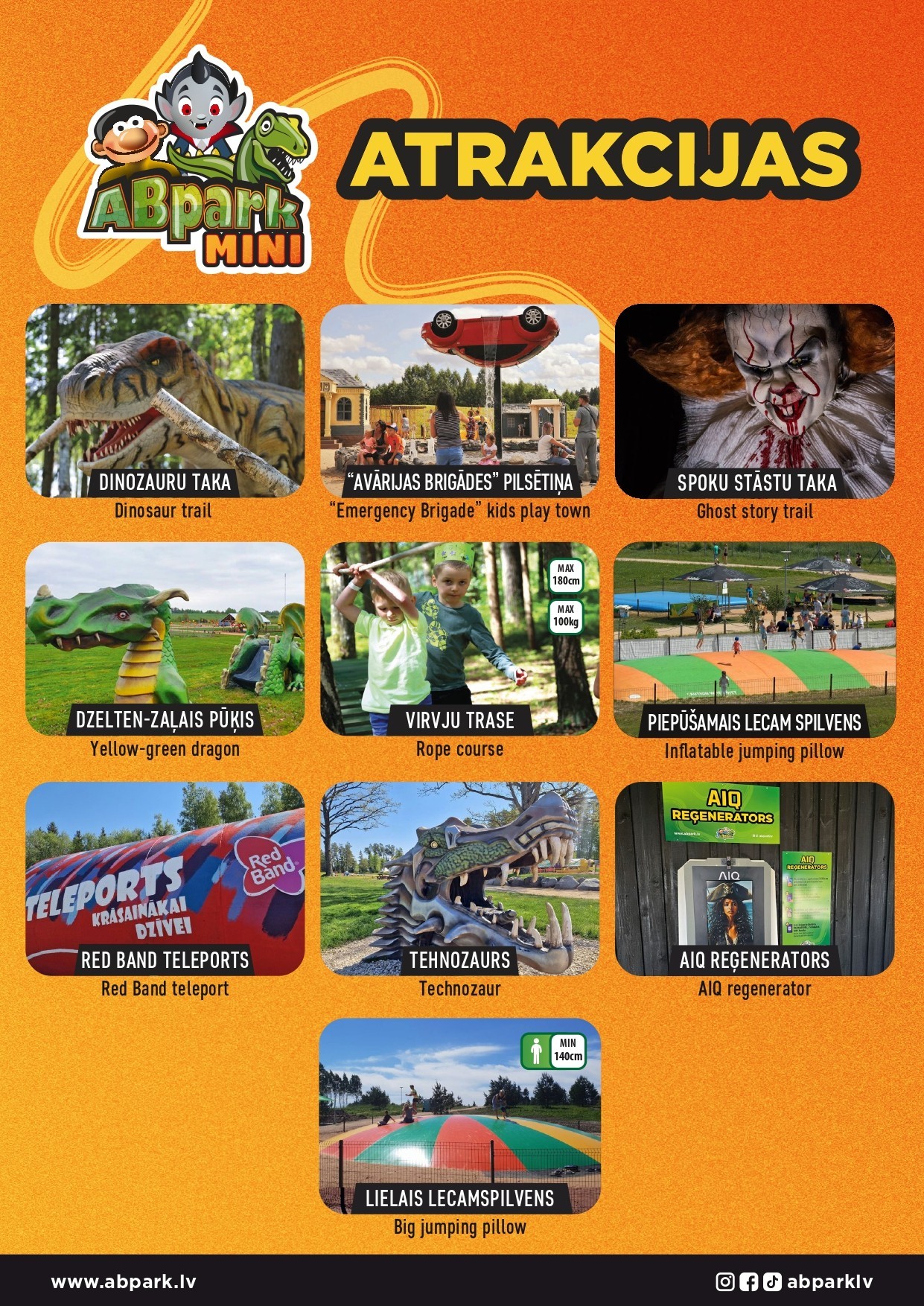 Informācija par pieejamajām atrakcijām: https://www.abpark.lv/ab-park/atrakcijas